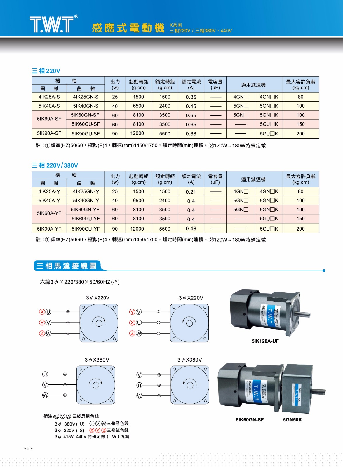■三相马达可以使用三相电源200~440V, 满足各样的需求